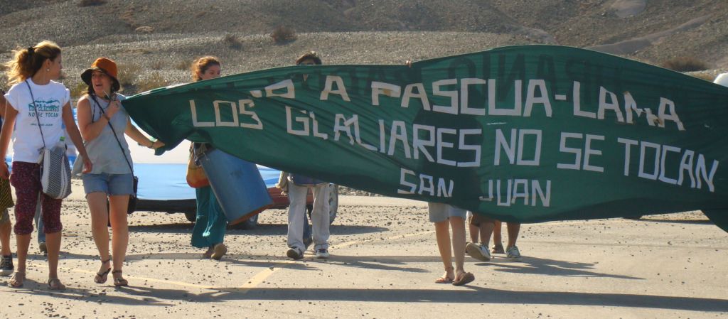 En el sistema federal argentino, las provincias poseen la capacidad de regular actividades económicas y de decidir cómo administrar regalías y cómo manejar sus recursos naturales dado el dominio originario que les reconoce la Constitución Nacional (Artículo 124). No obstante, las leyes de presupuestos mínimos dictadas por el Congreso de la Nación que refieren a temas ambientales establecen una tutela uniforme para todo el país y por ende las provincias deben adaptarse o bien aumentar el nivel de protección previsto por la normativa nacional. En 2010, el Congreso argentino sancionó Ley 26.639 de Presupuestos Mínimos para la Preservación de Glaciares y Ambiente Periglaciar que implicó un importante reconocimiento del estado para proteger estos ecosistemas frágiles[3]. La Ley establece en su artículo 6 la prohibición de actividades mineras e hidrocarburíferas en estos ecosistemas afectando a 44 proyectos mineros, entre ellos dos proyectos sanjuaninos: Pascua-Lama y Veladero, los que deberían detener sus actividades dada su proximidad a glaciares. Desde entonces, las Asambleas de Vecinos y organizaciones ambientalistas vienen reclamando a los diferentes ejecutivos provinciales y nacionales la implementación de la ley en el territorio provincial pero hasta el momento han tenido escaso éxito.
