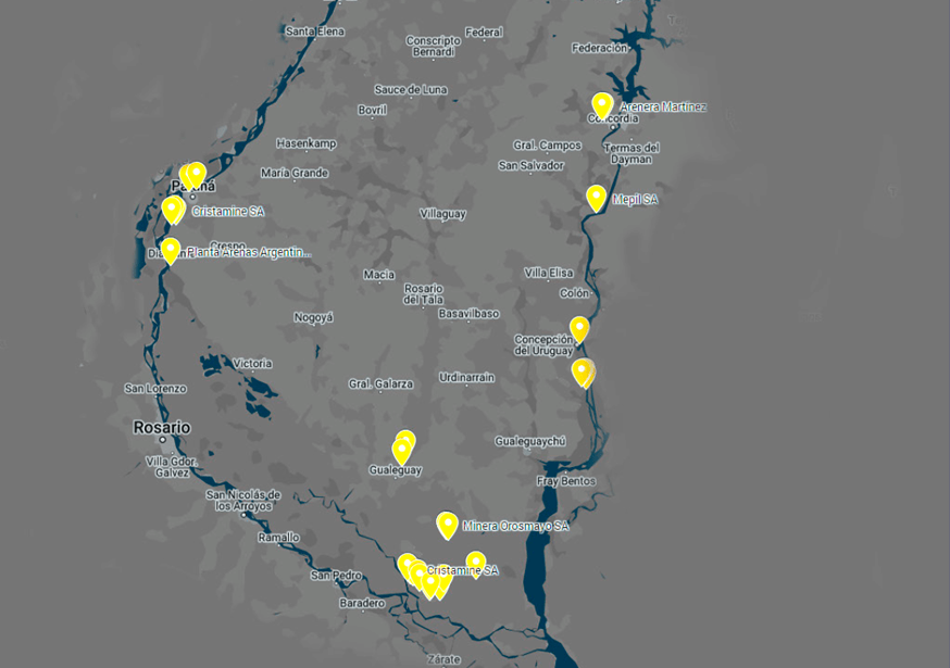 Gráfico Nº1. Ubicación de las empresas de arena en Entre Ríos.