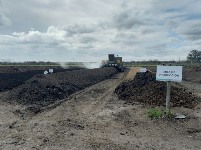 Imagen 1: La nueva normativa establece especificaciones y disposiciones para ordenar la instalación y funcionamiento de plantas de compostaje. En la imagen, pilas de compostaje identificadas por lotes y en proceso de volteo en una planta de compostaje privada habilitada en el municipio de Exaltación de la Cruz.