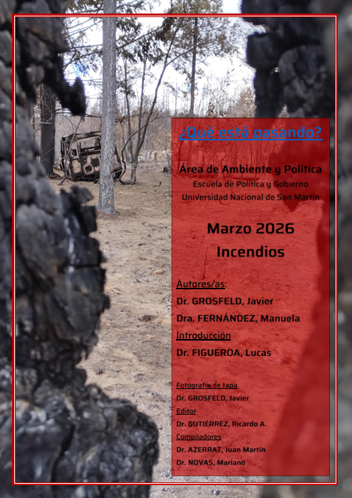 En continuidad con sus actividades de divulgación, a partir del año 2026, el Área de Ambiente y Política ofrece una serie de entregas temáticas sobre algunos de los principales desafíos y problemáticas que enfrenta la agenda ambiental en Argentina. Esta primera entrega sobre incendios reúne contribuciones de Javier Grosfeld (CCT CONICET PATAGONIA NORTE) y Manuela Fernández (INTA EEA Bariloche / GIAASP) e incluye una introducción de Lucas Figueroa (integrante del Área de Ambiente y Política). Compilaron Juan Martín Azerrat y Mariano Novas (integrantes del Área de Ambiente y Política).